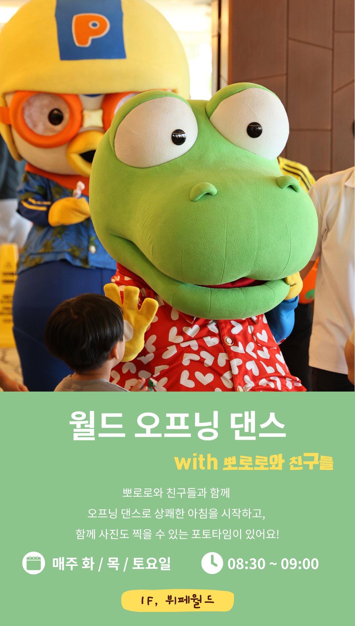 뽀로로와 친구들과 함께 월드 오프닝 댄스도 추고, 포토타임도 가져요!