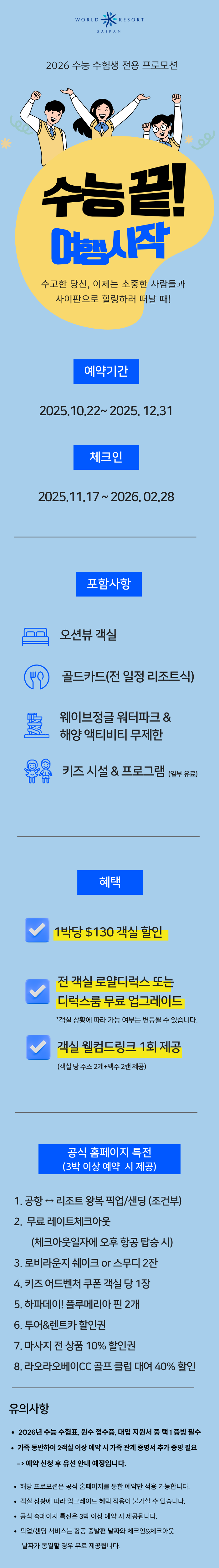 • 해당 프로모션 예약 시 2026년 수능 수험표, 원수 접수증, 대입 지원서 중 택1 증빙서류를 제출해주셔야 합니다.